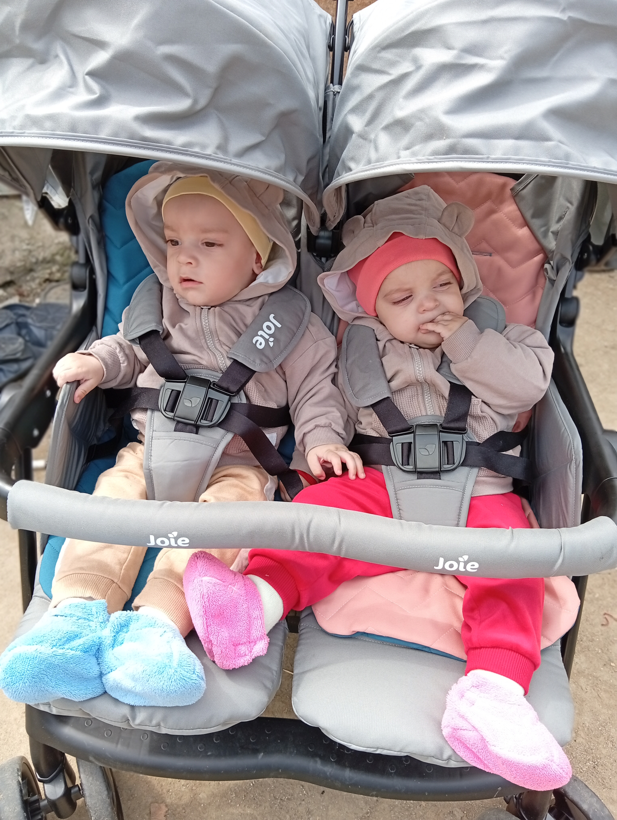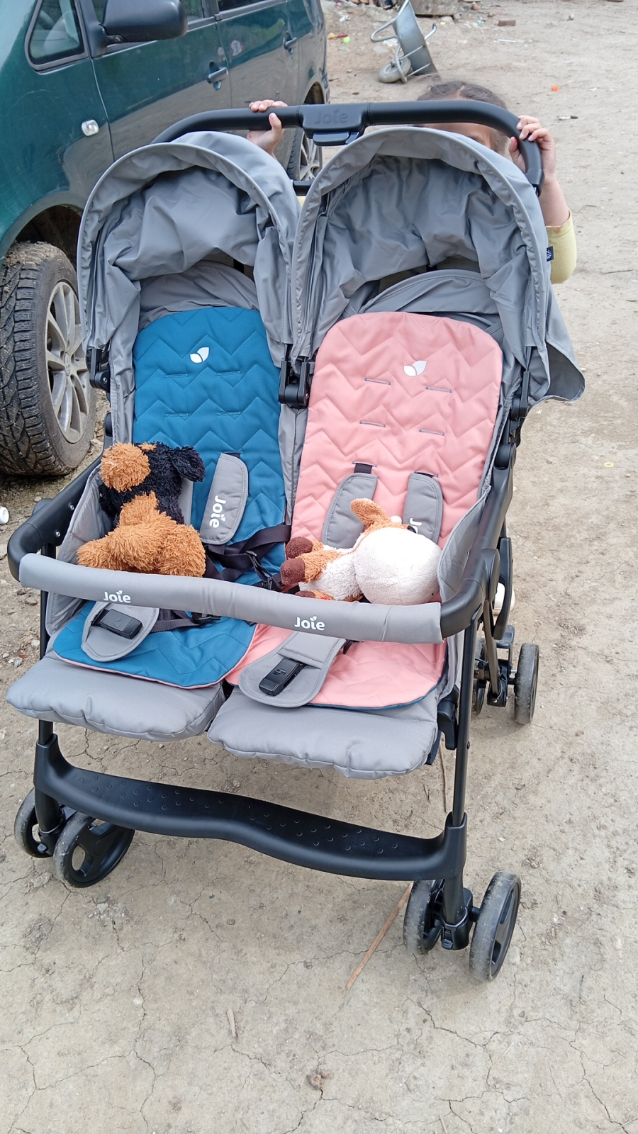 Inscrie-te aici pentru Beneficii Exclusive oferite membrilor din Clubul Joie! ____________________________________________________ De doua ori mai mult, fara efort dublu! Chiar daca plimbi doi copii, nu inseamna ca trebuie sa impingi o greutate uriasa – la doar 12 kg, acest carucior dublu este usor de manevrat si printre cele mai usoare din categoria sa. Cadrul din aluminiu de precizie se pliaza rapid si se transporta usor oriunde ai nevoie. Compact si practic Strangerea caruciorului devine simpla chiar si cu doi pasageri! Cu o singura apasare de buton, caruciorul se pliaza intr-o forma stabila, care se depoziteaza usor.. Confort personalizat pentru fiecare Capotinele, spatarele si suporturile pentru picioare reglabile individual permit fiecarui copil sa calatoreasca exact asa cum isi doreste. In plus, poti schimba sau potrivi saltelutele reversibile pentru un look pe placul tau. Caracteristici: Un companion plimbaret, proiectat pentru a tine pasul nu cu unul, ci cu doi bebelusi de la nastere pana la aproximativ 3 ani. Sasiul ultra-usor va permite sa va plimbati alaturi de bebelusi, oriunde si oricand! De asemenea, caruciorul ofera posibilitatea de a regla pozitia de somn individual - asadar un bebelus poate dormi iar celalat se poate juca. Sasiu de aluminiu foarte usor. Suportul din interior al caruciorului de gemeni, Aire Twin poate fi utilizat pe ambele fete. Spatarul are mai multe pozitii de inclinare, putand fi utilizat de la 0 luni. Suportul pentru picioare poate fi reglat in 2 pozitii distincte. Centuri comode cu protectii suplimentare; Centuri de prindere in 5 puncte cu posibilitatea de reglare a inaltimii in trei trepte distincte; Bara de protectie detasabila; Bara de protectie este confortabila (avand protectii special concepute pentru a evita orice posibila accidentare); Cos de cumparaturi mare; Copertina mare detasabila; Coperina are un geam prin care veti putea supraveghea bebelusii; Pliere usoara, sistem de blocare automat; Cand este pliat, caruciorul de gemeni, Aire Twin nu se va deplia; Rotile din fata sunt pivotante, oferind posibilitatea de blocare cand doriti acest lucru; Toate rotile au suspensii (asadar puteti folosi caruciorul si pe teren accidentat); Frana usor de utilizat;