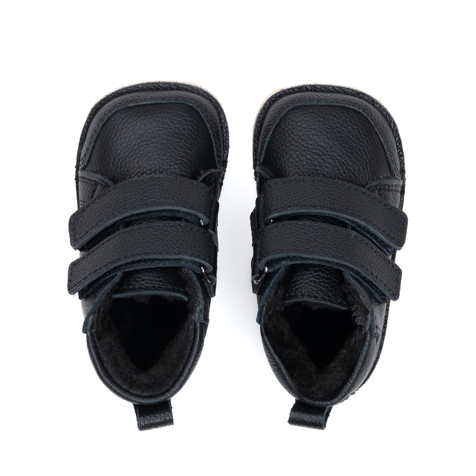 Melvelo ​​​​​​​Ghetute Barefoot Copii din Piele Naturala Imblanite – Primii Pasi, Talpa Flexibila Cauciuc, Iarna | Melvelo - Black